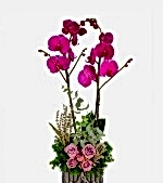Dekoratif Saksıda Çift Dallı Fuşya Orkide