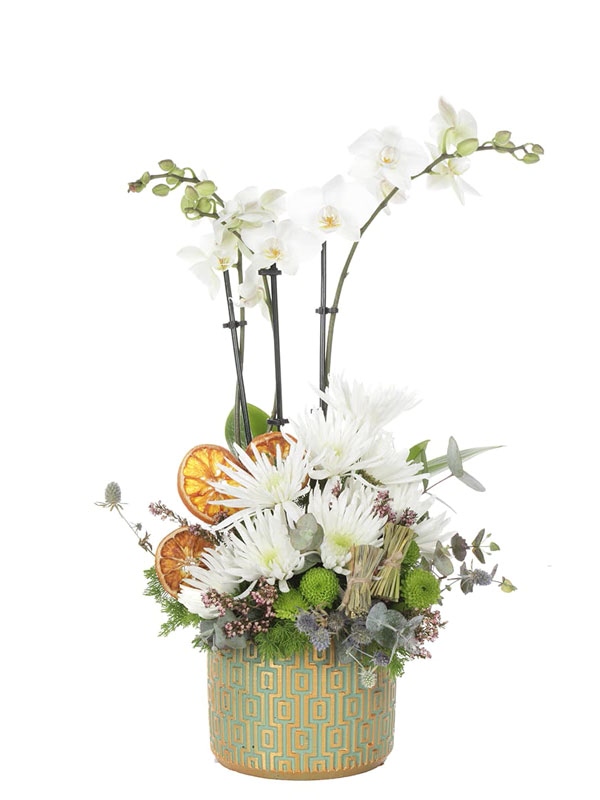Dekoratif Saksıda Çift Dallı Fuşya Orkide