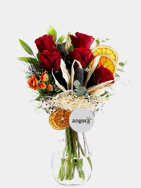 Sunrice Love ürünümüzün içerisinde 5 Adet Kırmızı Gül , Turuncu Çardak Güller , Kuru Portakallar ve xenium yeşillikler mevcut olup floral designers ekibimizin sizler için O’na anlamlı bir hediye armağan etmeniz için hazırladığı derlemelerdendir.